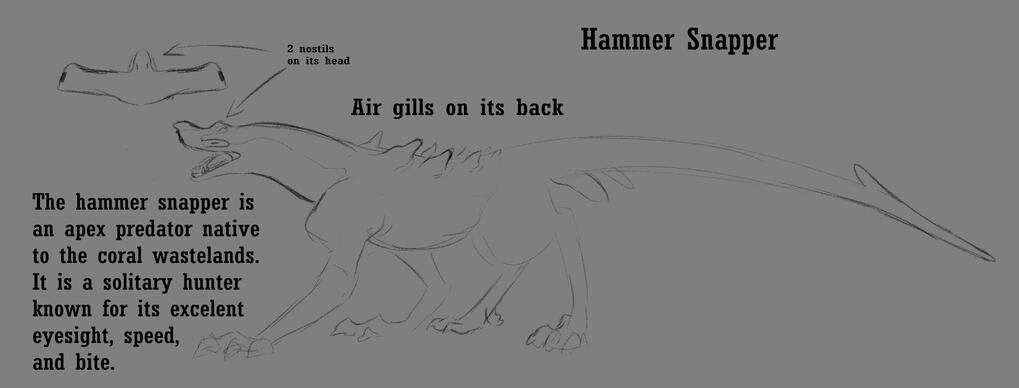 The Hammer Snapper is a terrestrial species of shark. A predatory apex predator that was man-made by previous human species that now abandoned earth.